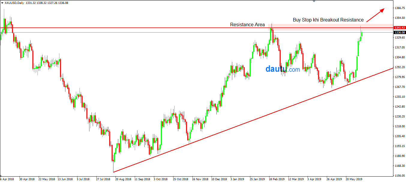 Vì trong một số trường hợp, với giá thị trường hiện tại gần một mức kháng cự – Resistance Level nào đó, nhà đầu tư đang phân vân liệu không biết giá có phá vỡ vùng Resistance này hay không, họ kỳ vọng giá sẽ phá vỡ vùng Resistance này và tăng mạnh lên, khi đó họ cài sẵn lệnh Buy Stop để đón đầu sự phá vỡ này.