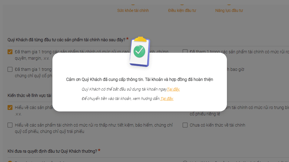 Những hồ sơ này đã được điền sẵn theo thông tin bạn đã đăng ký. Vì thế bạn chỉ cần in ra, ký tên và gửi lại cho công ty chứng khoán qua đường bưu điện.