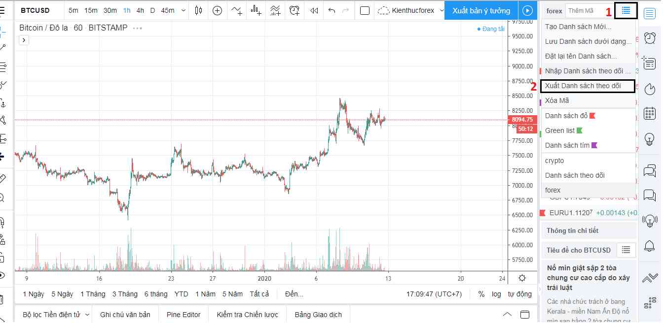 Để tiết kiệm bạn có thể “xuất các danh sách theo dõi”. Sau này nếu có chuyển qua tài khoản mới, bạn sẽ nhập danh sách này vào. TradingView sẽ tự động tích hợp toàn bộ các tiền tệ bạn có trong danh sách, mà không cần phải thủ công hóa nhập từng cái một!
